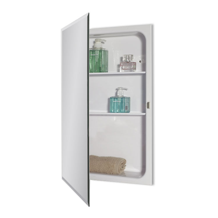- Body Material - Body Finish - Body Gauge - Resistance - Hinge Type - Hinge Gauge - Hinge Arrangement - Edge Style - Frame Thickness - Mirror Type - Door Catch - Door Swing - Door Thickness - Number of Doors - Number of Shelves - Number of Shelf Positions - Removable Shelves - Adjustable Shelves - Shelf Material - Steel - White Baked Enamel - 26 - Rust Resistant - Full Length Piano Hinge - 24 -  - Beveled Edge - Frameless with a 1/2" beveled edge - First Quality Plate Glass Mirror - Magnetic Door Catch - Reversible - 1/8" - 1 - 3 -  - Stainless Steel - Features